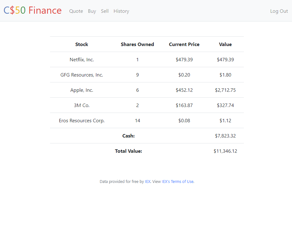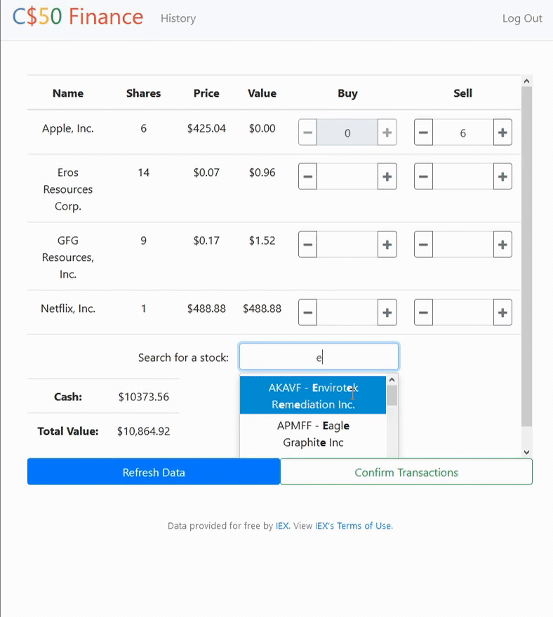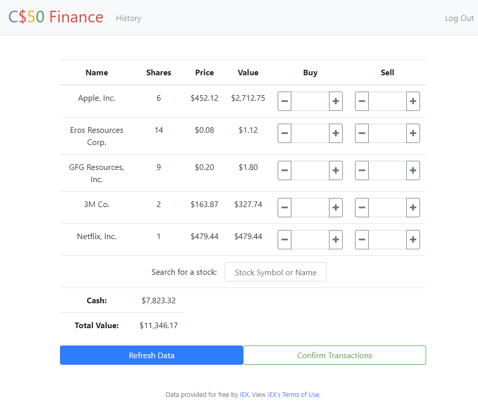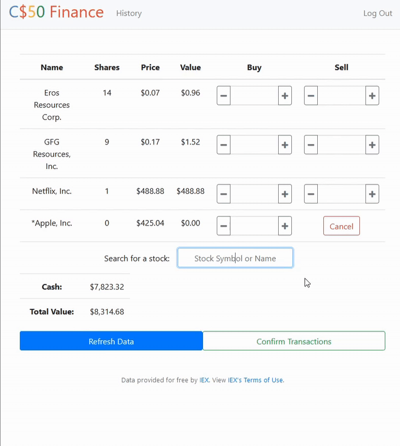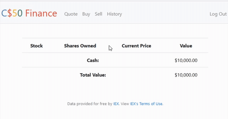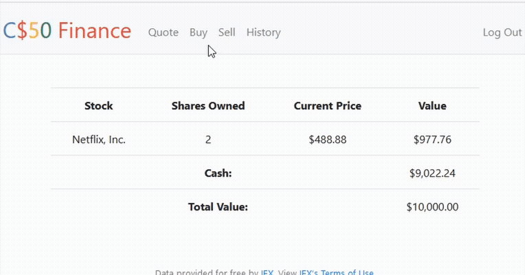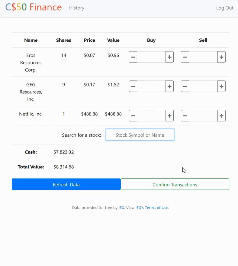 Calculations done client-side with the user receiving immediate feedback - value of shares are updated and cash balance is changed.